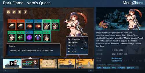 ■ 游戏内容卡牌构筑型Roguelike RPG收集卡牌和道具,构建更强大的卡组和组合,挑战馆的最深处。每个关卡和关卡内都有多个分支路线。即使是相同的地点,事件的发生和敌人的配置也是随机的。本游戏具有循环要素。如果失败,可以从战斗前开始重新进行。如果实在无法获胜,可以继承部分金钱和等级从头开始。P.S. 女主角纳姆是五年前发售的《灾厄之龙与异世界的少女们》中登场的女主角之一。本次游戏几乎是全新作品,但只有一张失败CG是从前作中沿用的。