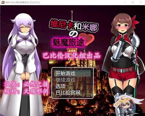 咳咳,给各位分享一款非常有趣的日式RPG汉化游戏!维斯卡和米娜の魅魔旅途 V1.0完整精翻汉化版(ウェスカとミーナのYIN魔道中)这是一款由社团制作的日式RPG游戏,现在已经由《巴比伦汉化组》翻译了中文版本大佬翻译,文本质量非常不错,不仅H文给力,两名女主全程斗嘴也非常有趣!在这里分享给大家!这是一款不管是设定还是风格都非常独特的日式RPG游戏,两名身中{魅魔诅咒}的少女一路旅行,一路结识各种各样的O棒的神奇故事!人设有趣,毒舌白毛精灵牧师+天然呆巨汝女骑士,互动有趣,各种剧情也相当神奇!(看她俩说话就跟听德云社相声似的……)总之,包含非常丰富的恶堕,阿黑颜,自己主动白给,以及各种丰富的H事件~画风不错,CG质量很高,推荐大家体验一番!游戏翻译不易,喜欢游戏的朋友希望可以多多支持《巴比伦汉化组》和辛勤的汉化者!