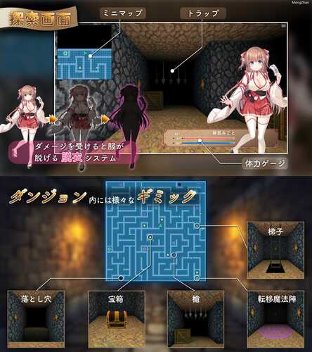 地牢和脱衣系统在战斗中受到伤害时,服装会逐渐脱落。在注意小地图和生命值的同时,避开各种陷阱,讨伐淫魔。