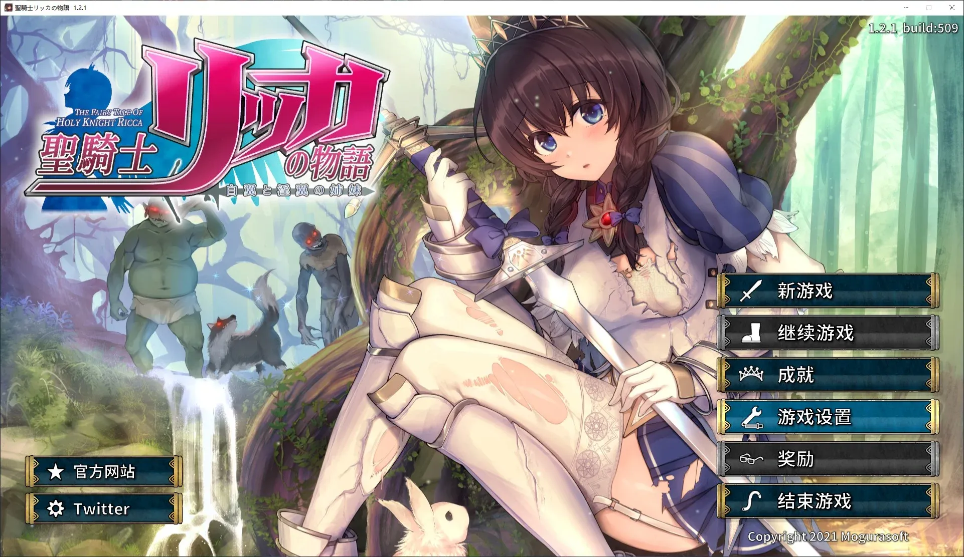 H事件也非常的丰富《圣骑士莉卡物语 白翼与银翼的姐妹》(日语:聖騎士リッカの物語 白翼と淫翼の姉妹;英语:The Fairy Tale of Holy Knight Ricca: Two Winged Sisters)是由日本同人游戏社团Kagura Soft开发的R-18角色扮演横版过关动作游戏,于2021年12月25日发售。官方中文版于2023年09月29日发售。另有官方英文版。■■■游戏概要■■■此为受神选上的少女「莉卡」透过魔法力量变身为骑士和怪物战斗的3D横版动作游戏。莉卡被特定的敌人抓到或战败的话就会沦落色色的下场。游戏整体构成为关卡通关型。在动作游戏画面的前后会进入事件演出。在关卡之间可以强化变身圣骑士莉卡的能力或战斗中能派上用场的道具。服装或体型都能自定义,自定义过的内容也会反映在事件演出或H场景上。简介照耀着地上生者的神圣阳光当那光芒愈发强烈当那光辉愈发耀眼那影子也会更浓……那光也落得更深……被神选中和妹妹成为♯♯的姐姐这是一个被淫靡所粉饰的孤独姐妹的童话……被授予了变身伪圣骑士的力量的妹妹莉卡为了寻找被带走的姐姐米莉亚而出发用丰富多彩的战斗来消灭阻止圣骑士去路的强大魔物们!