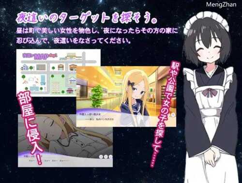 夜袭是在夜间进行的!在此之前,可以在城镇中寻找可爱的女孩,找到她们的住处,为夜袭做准备。