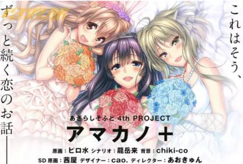 shi-soft将于2016年12月22日发售新作游戏「アマカノ+」。本作是大受好评的「アマカノ」的AfterStory,新作中将以“夏日舞台”与“未来”两个部分来为玩家编织出比本篇还要甜蜜的故事。故事中登场的女主角依然是高社神社的高社纱雪,原同居人上林圣,甜点屋看板娘星川小春。每位女主角都将有5个H场景与包括4张SD角色的共计21张CG。其中在高社纱雪的故事中,在毕业后结为夫妻的两人将宁静的黑濑温泉选为了新婚旅行的目的地,在夏日的温泉乡享受着新婚生活。而在某个冬季,两人决定要孩子,并以家长的身份开始新的生活。在即将迎来新生命诞生的时候,主人公也下定了决心……