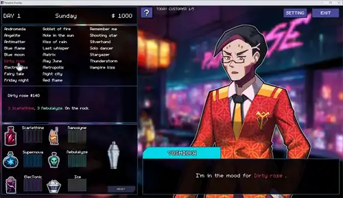 生活在赛博朋克大都市中,您可以在这里与女孩互动,为她们提供饮料并照顾这些女孩,你愿意吗?