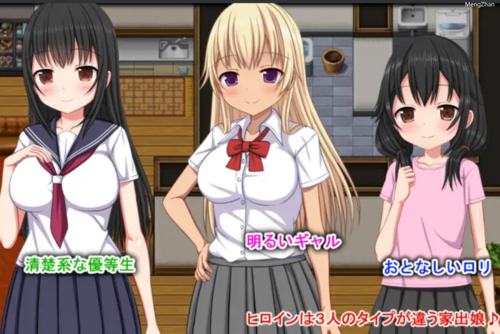 女主角是三位不同类型的离家出走女孩。有43张基础CG!还有立绘。