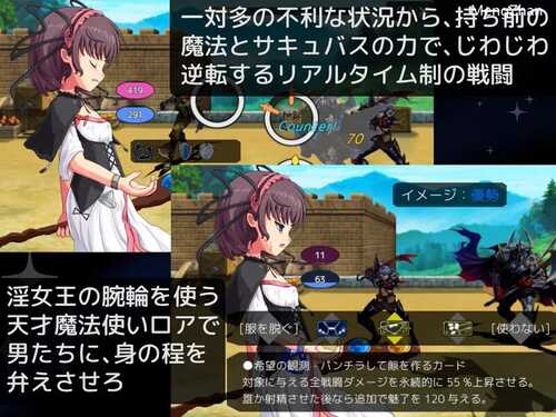 女魔法师+魅魔战术为概念的战斗成人RPG虽然魔法很强但MP消耗完就什么都做不了的主人公,通过加入魅魔的色诱战术,使用色诱攻击使对方失去战意,