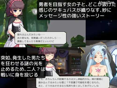 女魔法师+魅魔战术为概念的战斗成人RPG,虽然魔法很强但MP消耗完就什么都做不了的主人公,通过加入魅魔的色诱战术,使用色诱攻击使对方失去战意,一对多与男人们战斗的独特战斗系统RPG。游戏体验应接近小说+关卡清除型动作游戏。基本上,只要强化角色,战斗就会变得轻松。有救济装备,如果几次没能完成任务就会获得。有适度强力的装备和作弊级别的强力装备,请根据难度调整使用。虽然是战斗成人游戏,但都是主动进行的,融入了战术中。因此在游戏过程中可能会稍显不便,完成后请以画廊模式为主。游戏中大部分时间是战斗或观看对话部分。 女魔法师+魅魔战术为概念的战斗成人RPG,虽然魔法很强但MP消耗完就什么都做不了的主人公,通过加入魅魔的色诱战术,使用色诱攻击使对方失去战意,一对多与男人们战斗的独特战斗系统RPG。游戏体验应接近小说+关卡清除型动作游戏。基本上,只要强化角色,战斗就会变得轻松。有救济装备,如果几次没能完成任务就会获得。有适度强力的装备和作弊级别的强力装备,请根据难度调整使用。虽然是战斗成人游戏,但都是主动进行的,融入了战术中。因此在游戏过程中可能会稍显不便,完成后请以画廊模式为主。游戏中大部分时间是战斗或观看对话部分。